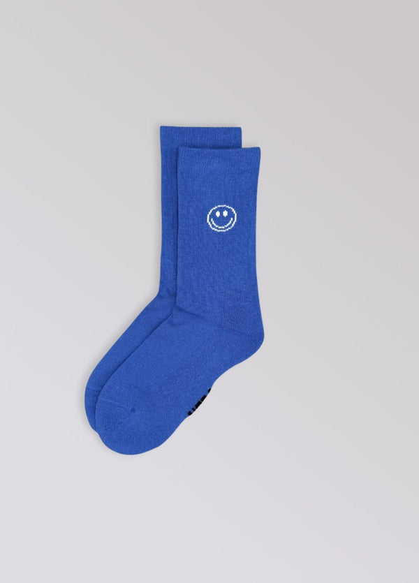 Blau wie der Sommerhimmel, mit einem Lächeln im Gepäck: Die blaue Smiley-Socke hebt sich durch den weißen Smiley klar ab. Für kleine Abenteurer:innen, die nie ihr Lächeln verlieren – egal wohin der Tag sie führt.